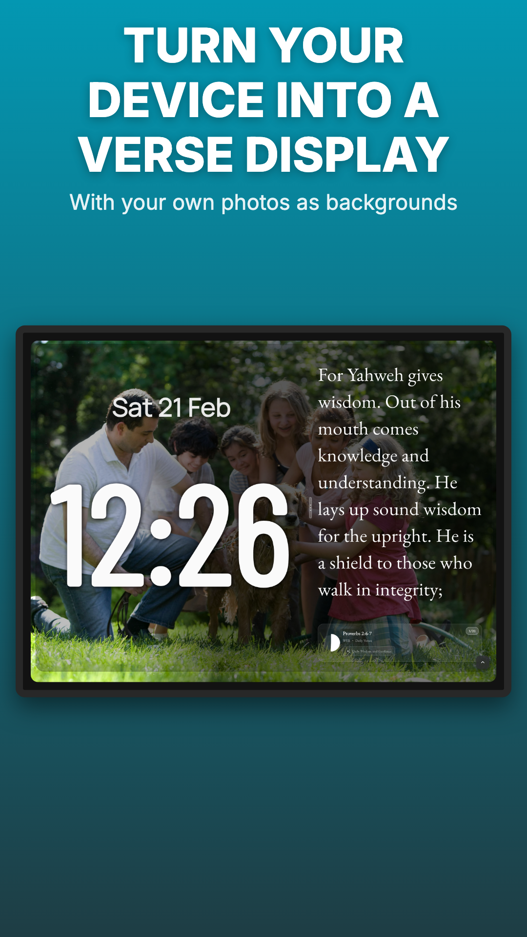 Download Bible Clock now and turn your device into a beautiful, quiet companion.