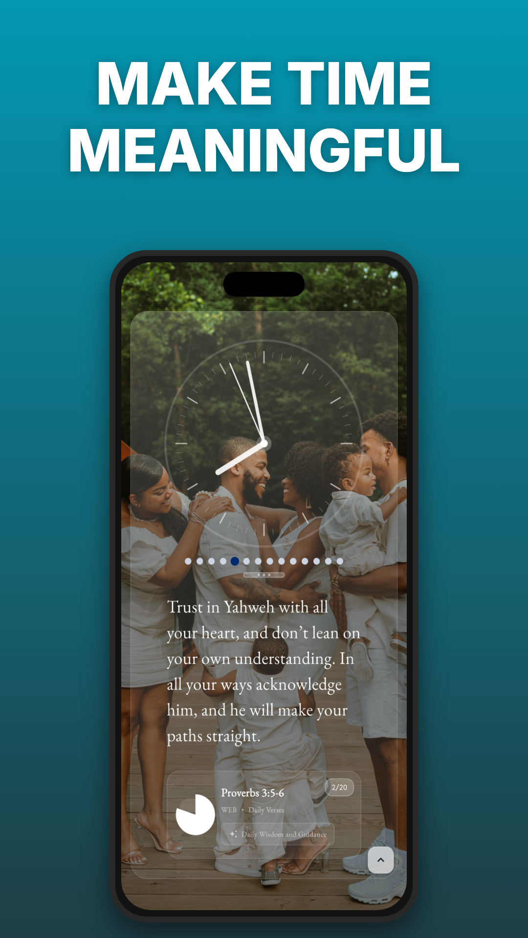 Instead of notifications and noise, Bible Clock offers a gentle rhythm of time and Scripture, helping you stay grounded.