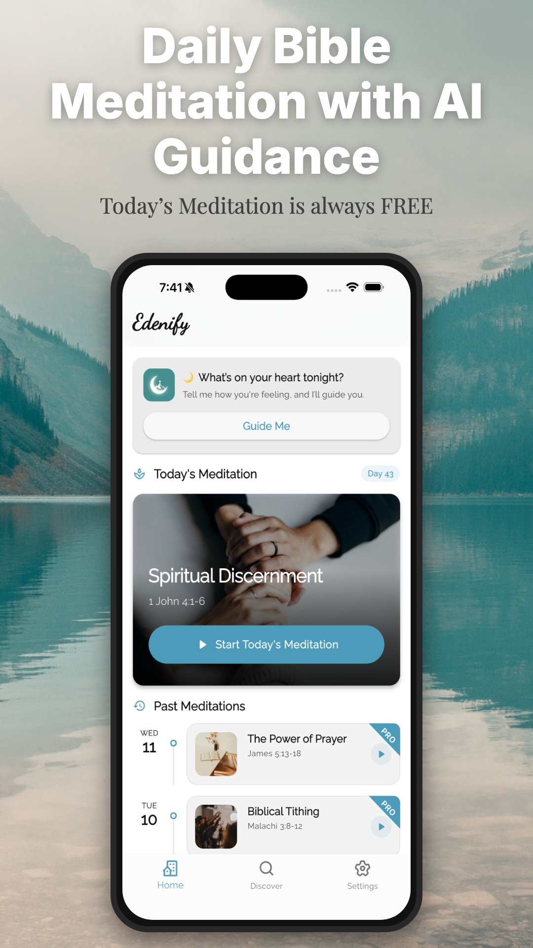 Edenify gives you a calm, guided audio meditation every day, rooted in Scripture, so evenings feel quieter and mornings feel grounded in God's Word.