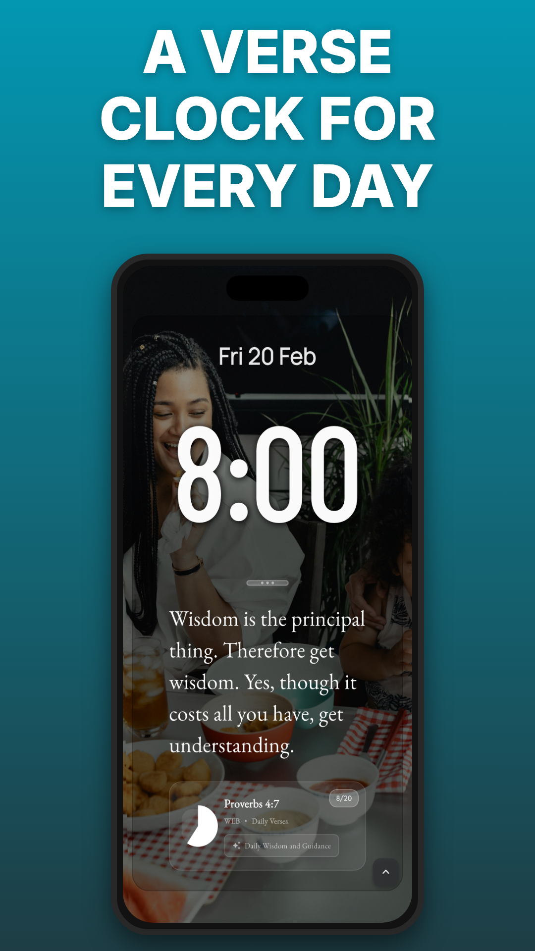 Instead of notifications and noise, Bible Clock offers a gentle rhythm of time and Scripture, helping you stay grounded.