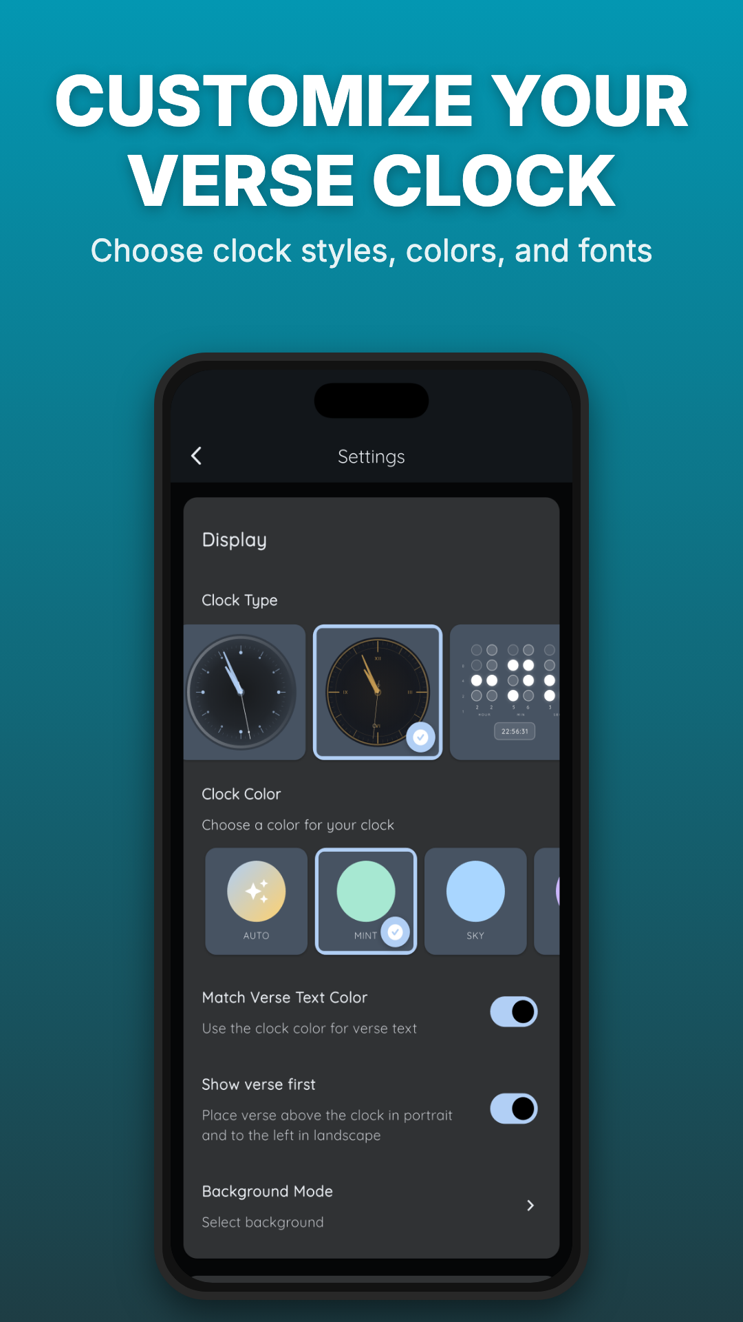 Enhance your verse clock with subtle, immersive visuals. Support for light & dark mode.