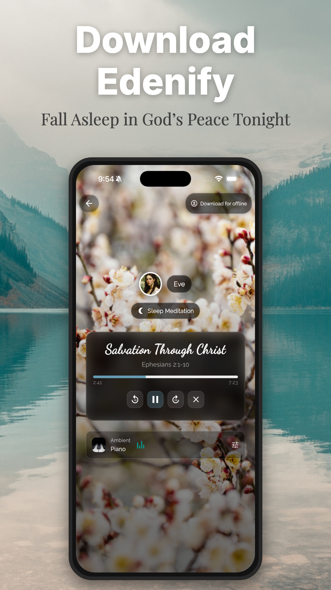 Edenify gives you a calm, guided audio meditation every day, rooted in Scripture, so evenings feel quieter and mornings feel grounded in God's Word.